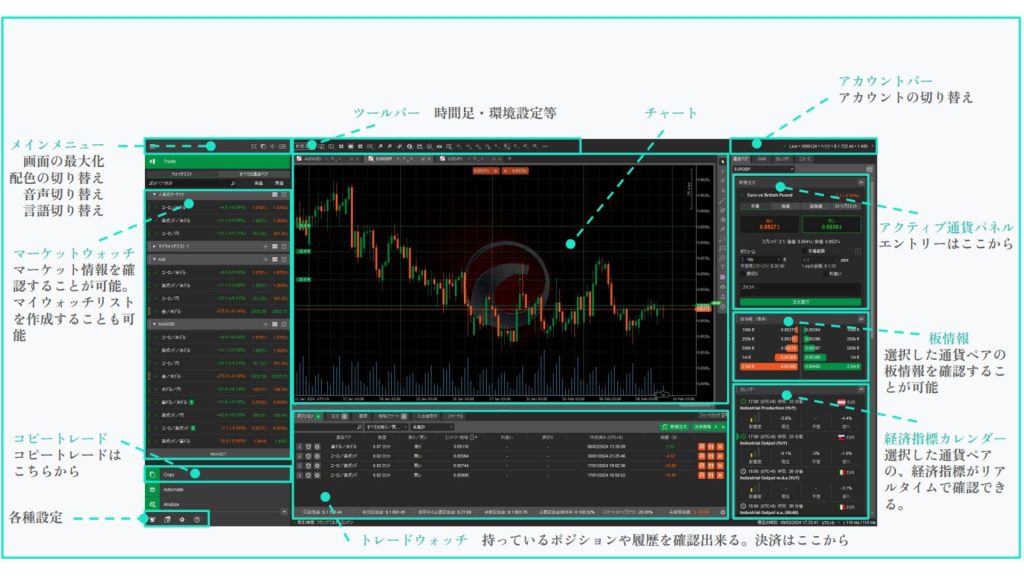 - トレードウォッチ:保有ポジションの管理や取引履歴の確認が可能