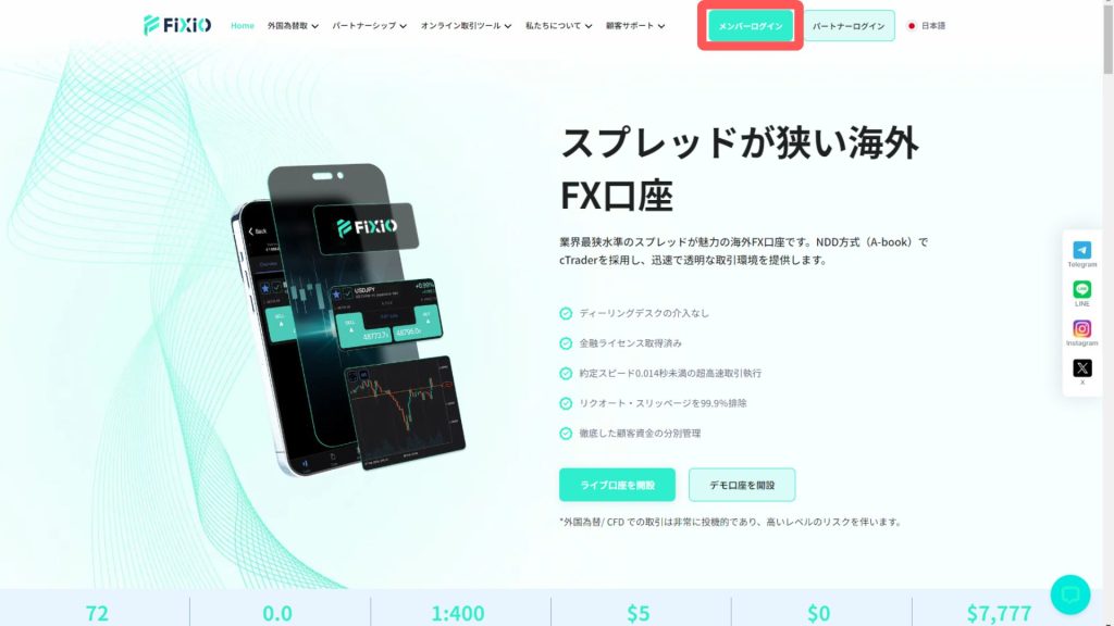FIXIOは、cTraderに特化した数少ないFX業者の一つです。cTrader専用口座でゼロスプレッド取引やスキャルピング取引を楽しめますよ。