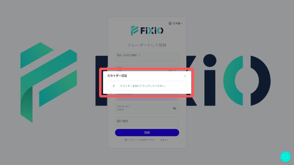 登録ボタンを押すとスライダー認証が表示されるので、認証しましょう。